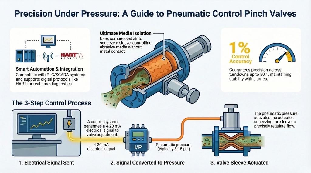 In conclusion, the pneumatic control pinch valve stands out in precision modulation as a reliable modulating control valve, offering linear flow control through smart automation while proper sizing guarantees maximum effectiveness in industrial applications.